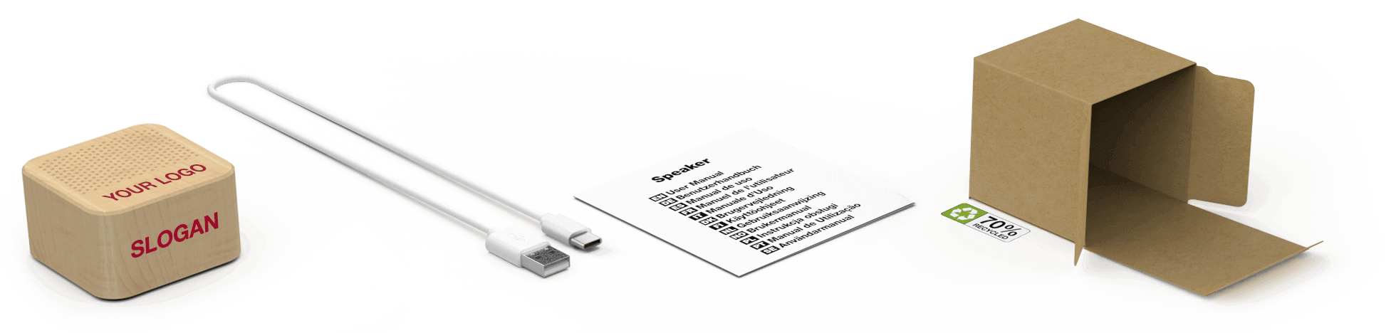 Made from natural maple wood, this beautiful Bluetooth® speaker is more environmentally friendly than all-plastic alternatives. It’s compatible with all major phone and tablet brands with Bluetooth® connectivity. So, no matter what device your recipients use, they can enjoy their favourite beats wherever they are. We also offer a great selection of speaker accessories, including carabiner clips for easy travel and a magnet box for smarter presentation.