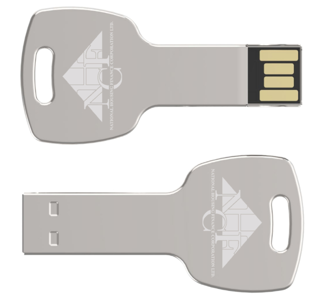 Ideal for corporate giveaways, tech events, or as a sophisticated promotional item, the Key flash drive proves how style and practicality can enhance your brand's visibility and appeal.