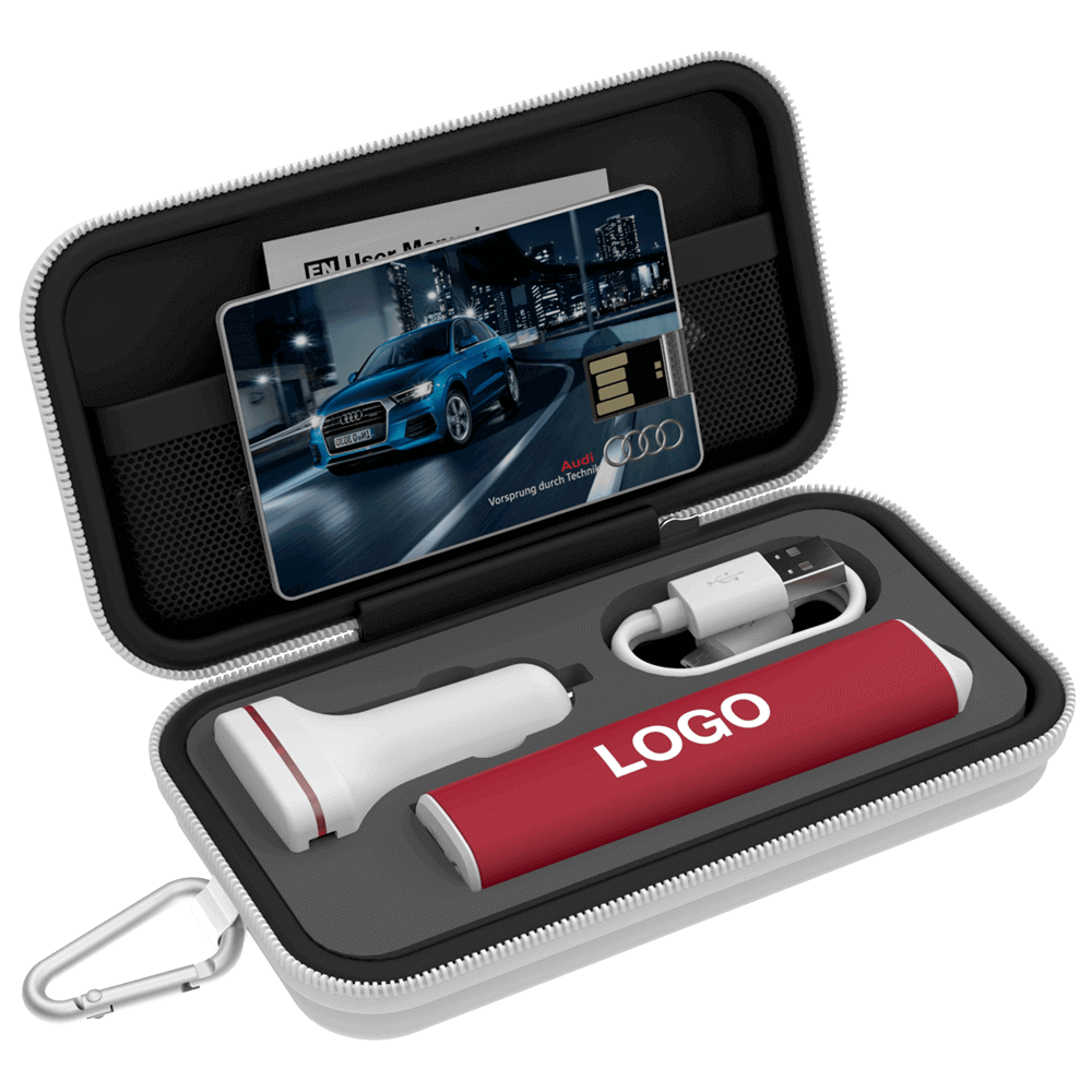 Gift Set Medium USB Flash Drive, Power Bank and USB Car Charger