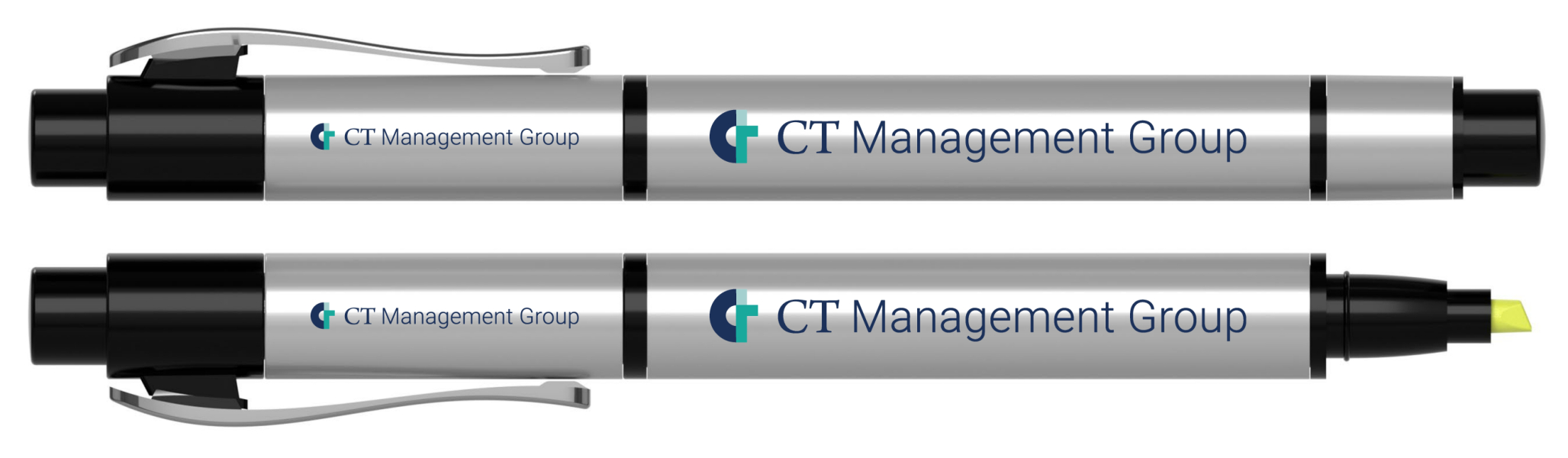 The Accent features a smooth ballpoint pen and handy highlighter in one fantastic model. We can add your logo to both sides of the body, and also on the cap. The Accent also boasts a handy clip and comfortable grip - ensuring it'll be used daily, giving your brand maximum exposure.