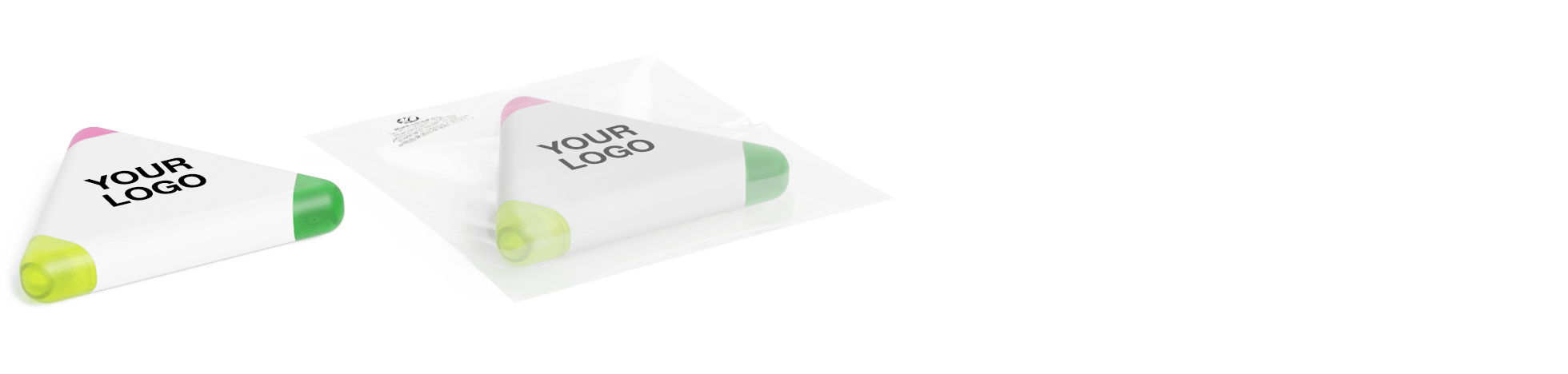 Our Triple highlighter pen boasts 3 different highlighters on one model - yellow, green and pink. The eye-catching triangular shape also makes it an extremely popular giveaway item. We can add your logo, slogan and more to both sides of the Triple - which gives you fantastic brand exposure on a product that'll be kept and used frequently.