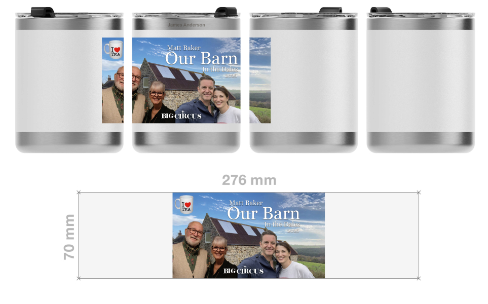 We can print your artwork so it covers the full circumference of the body. The end result is an extremely vibrant and eye-catching product that'll be used daily.