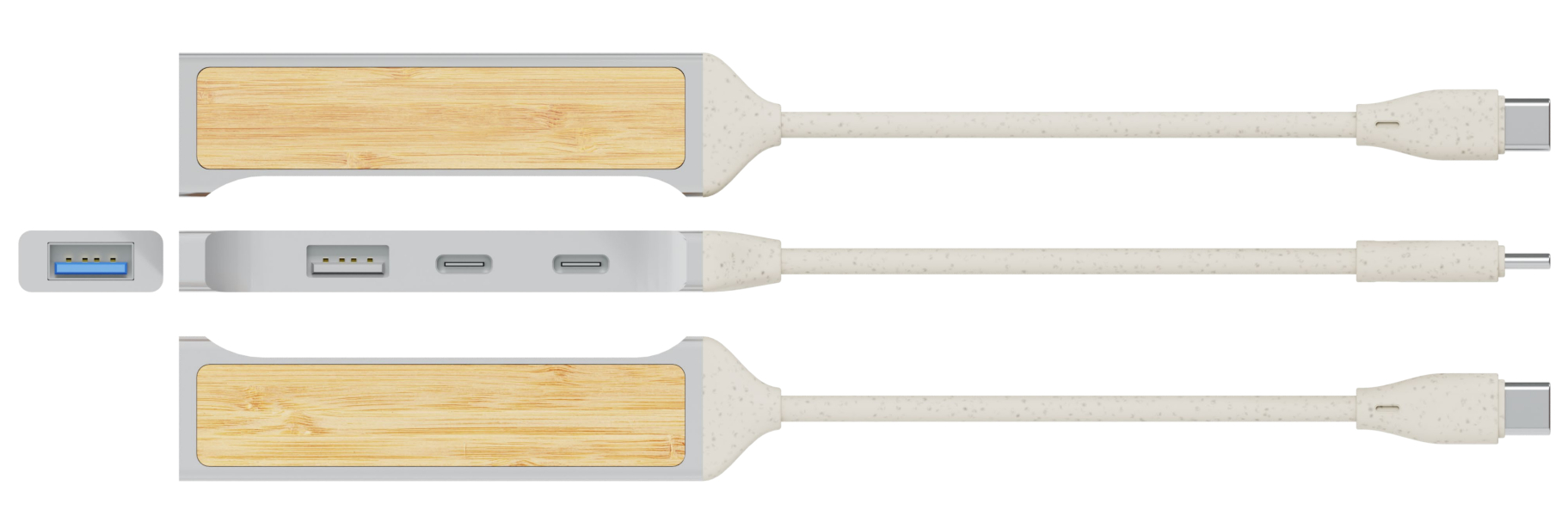 The Expand Bamboo combines rapid data transfer with convenient charging in a single sleek unit. It lets you plug in several devices at the same time using its two USB-A ports (USB 2.0 and USB 3.0) along with two USB-C connections. An integrated USB-C cable is also included for easy setup. The Expand Bamboo works seamlessly with a wide range of peripherals, including Flash Drives, External Hard Drives, Card Readers, Keyboards, Mice, and more. You can check out our , which features an aluminum alloy shell.
