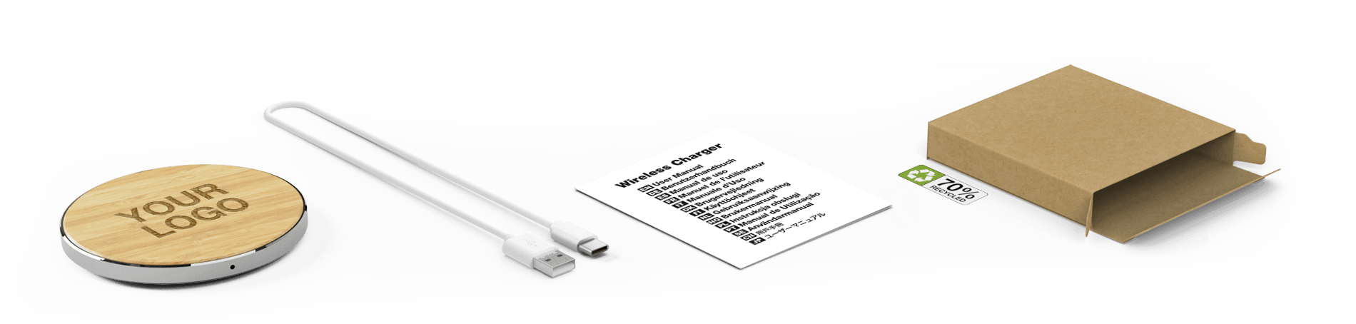 The natural bamboo wood finish creates a striking contrast with vibrant brand imagery, aligning your company with eco-friendly values. Opt for our Individual Naming service to create personalised wireless chargers for onboarding clients or employees. Alternatively, number your units for data gathering for your next trade show or event. The wireless Ring charger is also part of our new merch packs, perfect as gifts for employees and clients!